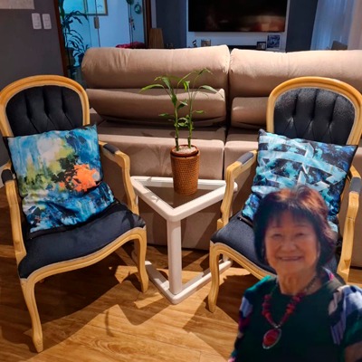 "Me chamo Anita Aragão,sou fã das obras da Eliane Mourão, dos quadros, das almofadas, tudo na minha casa tem um toque dela. E eu me sinto muito feliz. E, e conheço a Eliane há muitos anos, e ela sempre foi uma grande artista. Assim, não deixe de ter as coisas dela na sua casa, tal como eu. Que sou muito orgulhosa desse fato. E por último, o quadro dela, que foi onde que tudo começou. Obrigada, e um bom dia."
