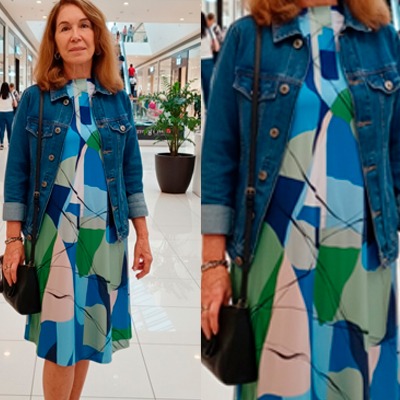 Essa saída de praia para mim tem sido assim um coringa. Ela é levíssima, posso usar nas minhas viagens, tanto como saída de praia como vestidinho de verão. E, até ao contrário, pondo o decote para as costas, a peça vira um vestido mais arrumadinho com uma jaqueta. Está sendo muito bom, todo mundo elogia. A estampa é belíssima, é leve e fácil de lavar.